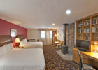 Deluxe Fireplace Rooms have two queen beds, are extra large rooms with a
